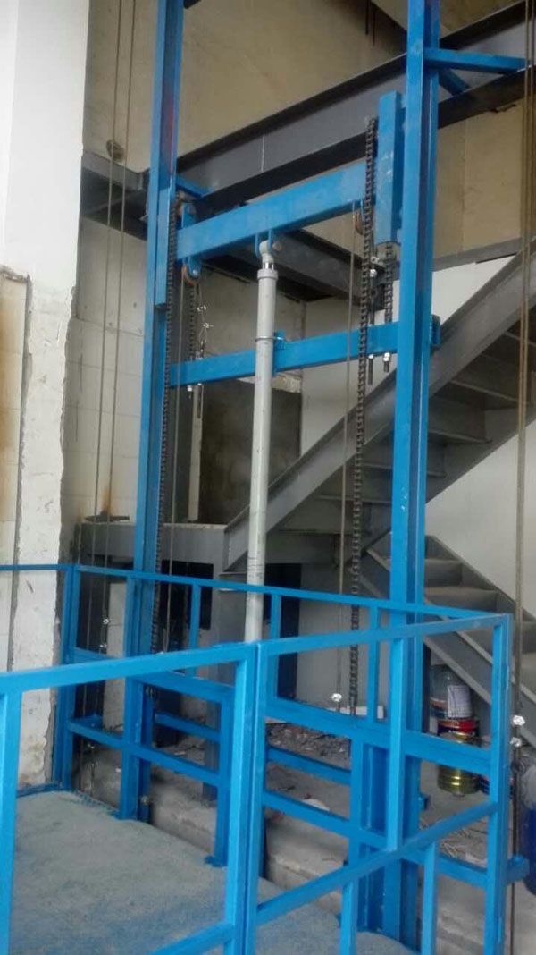 導軌式升降機是一種非剪叉式液壓升降機械設備·用于二三層工業廠房,餐廳,酒樓樓層間的貨物傳輸·高度在150-300mm,尤其適合不能開挖地坑的工作場所·并且無須上部吊點形式多樣化(單柱,雙柱,四柱).設備運行平穩,導軌式升降機的導軌一般為槽鋼、工字鋼,方管焊接制成,操作簡單可靠,貨物傳輸經濟便捷。